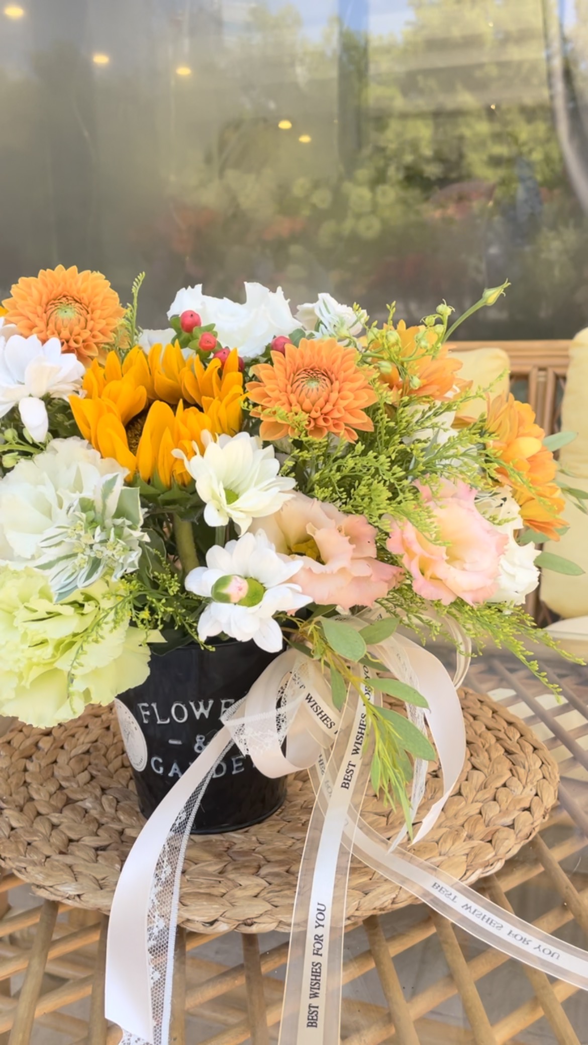Özel tasarım, taze çiçekler ve sizin tarzınıza uygun kompozisyon.